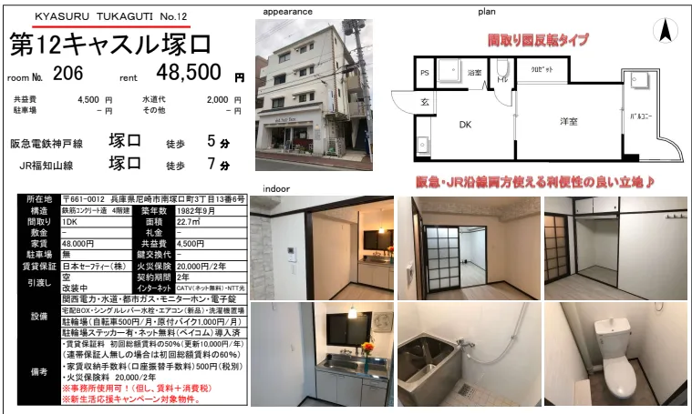最寄り駅:阪急神戸線塚口駅 徒歩5分/JR福知山線塚口駅 徒歩7分